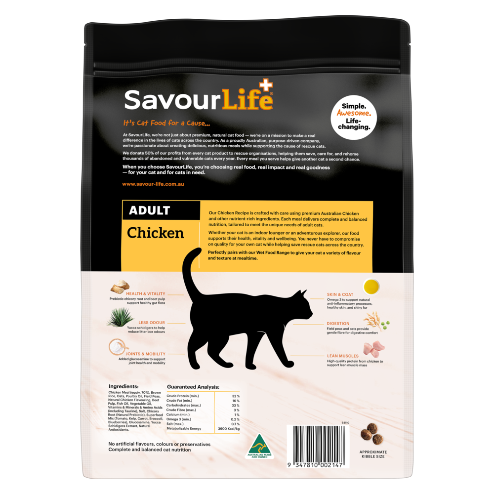 SavourLife Chicken Adult Dry Cat Food is a premium recipe formulated to deliver complete and balanced nutrition for adult cats.