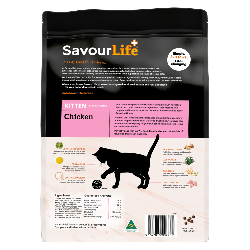 SavourLife Chicken Kitten Dry Cat Food is a premium recipe formulated to deliver complete and balanced nutrition for kittens up to 12 months of age.