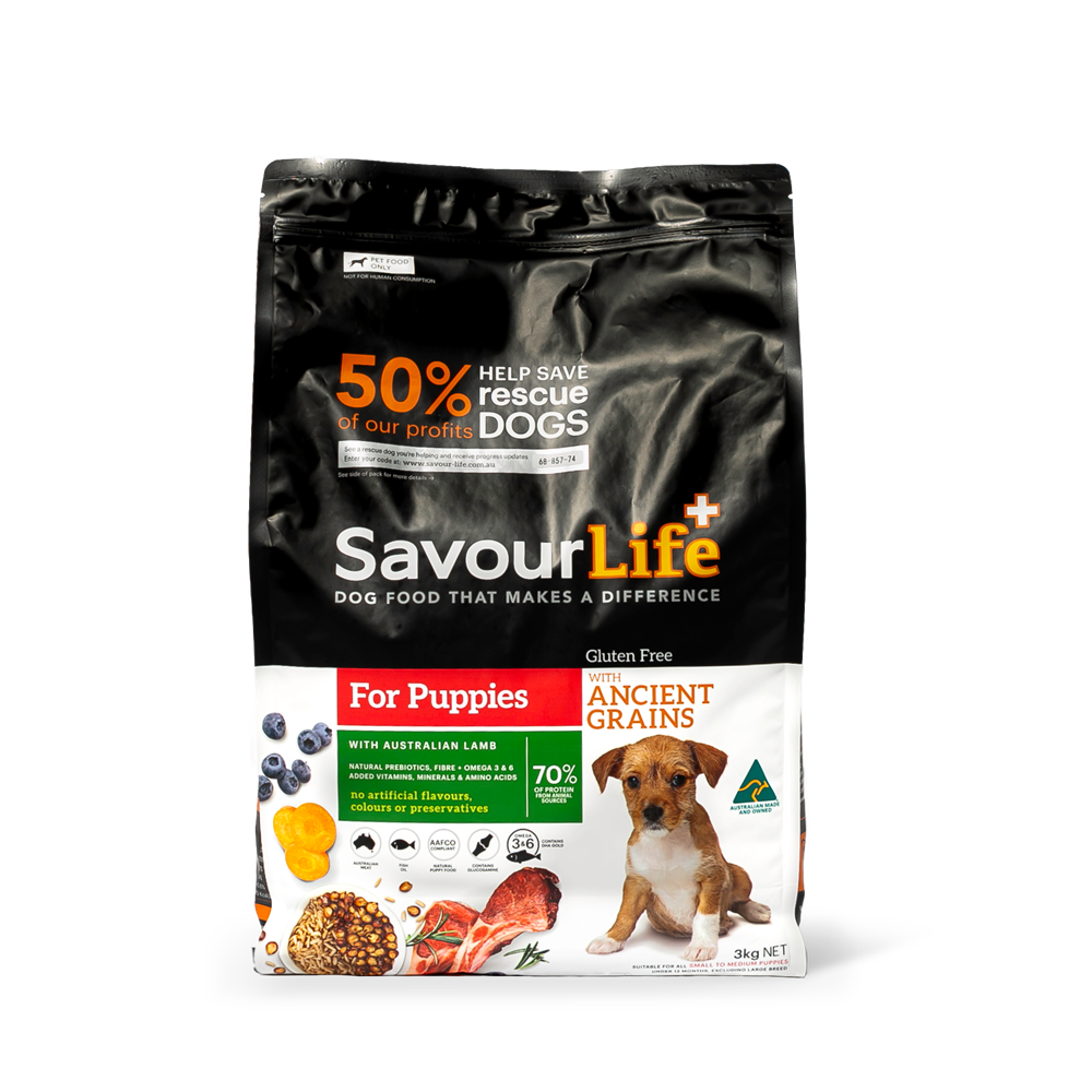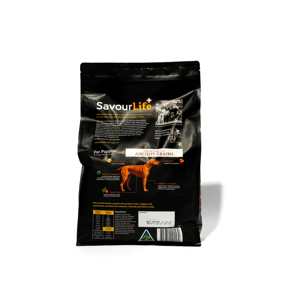 The first months of a puppy’s life are crucial to their long-term health and well-being. Puppies require more nutrients and energy than older dogs to help them grow into the best dog they can be. With all the healthy vitamins, minerals and nutrients to ensure your puppy’s development; SavourLife’s Gluten-Free with Ancient Grains for Puppies with Australian Lamb is an all-natural, holistic, Australian-made, gluten-free food with natural superfood inclusions.